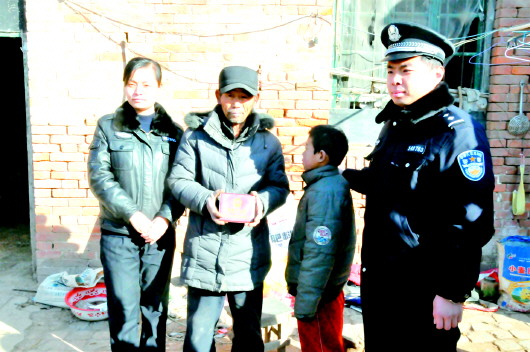 民警为贾新斋一家送去新户口本。 本报记者 王传胜 摄