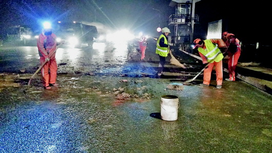 据悉,黄河大桥北侧有一处渣土场,因此每到夜间就有大量渣土车途经黄河大桥,往渣土场运送渣土。很多渣土车为了多拉快跑,渣土装得很高。而黄河大桥南北两侧装有限高杆,限高3米。渣土车从收费口上桥时,堆积超高的渣土就被限高杆削平,撒落到地上。