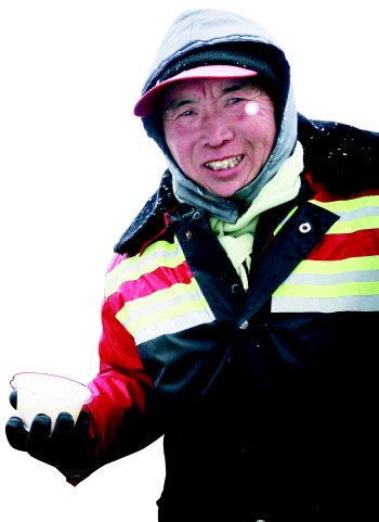 本报12月16日讯(记者 李静) 16日,港城迎来入冬以来最大的一场雪,环卫工们雪中坚守岗位,着实让人感动。本报“环卫工歇脚点”爱心商家雪中送暖,将140杯热粥送到雪中工作的环卫工手中,温暖了环卫工们的心。本报联合市环卫处举办“环卫工歇脚点”活动,就是希望给环卫工送上一份温暖,如果您也想为环卫工做点事,请联系我们。