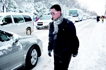 像毓璜顶西路、解放路、二马路、青年南路等有坡的路段,许多车辆频频打滑,无法前行,被困在路上。除交警帮助推车外,穿高跟鞋的美女、上学路上的孩子等路过的市民,看到车辆打滑受困后,纷纷伸出援手,帮忙推车,在寒冬里上演了一幕幕令人感动的雪中温情故事。