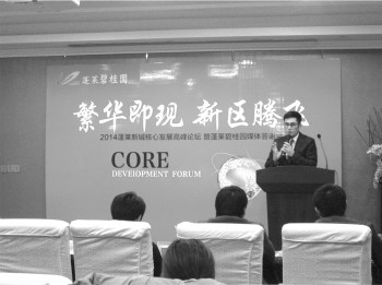 论坛上,蓬莱碧桂园项目总经理徐晓东先生表示,作为蓬莱当地一家知名开发商企业,一方面要抓住空港经济发展的全新机遇,深刻发挥新区核心价值发展潜力优势;另一方面要加强项目的配套建设及建筑品质要求,坚持以客户利益为上的服务理念,从而进一步提升产品优势,力争成为广大客户首选的极具投资潜力的明星楼盘。