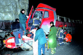两半挂车凌晨高速追尾一人被困