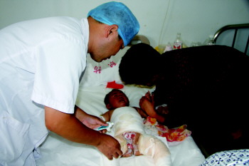 市职防院医生正在为烫伤患儿治疗。 本报通讯员 张其勇 摄