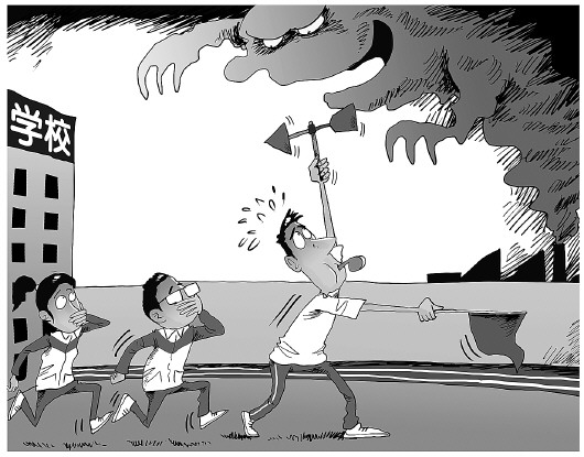 据《南方都市报》报道,因时常有刺激性气味,广州颜乐天纪念中学学生上体育课前,老师要先辨别风向再决定在哪块区域上课。原来,近年来,颜乐天纪念中学已被大大小小工厂360度层层包围,周边污染严重。老师们连续5年的投诉,困扰1000多名师生的刺激性气味却从未停止…… 漫画/张建辉