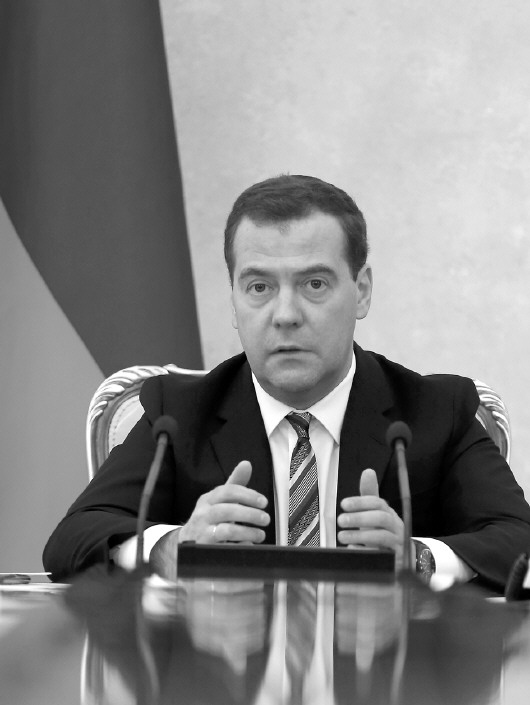 17日,在俄罗斯莫斯科,俄政府总理梅德韦杰夫主持召开金融经济形势会议。 新华/美联