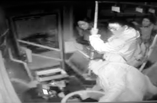 监控显示,公交车停好后,李福振倒下。本报记者 邓兴宇 翻拍