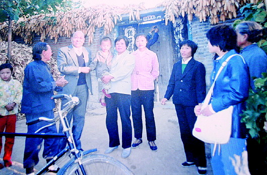 父亲走时我还没出生……1988年4月,人到中年的我才得知亲生父亲还健在人间,于是立即去信取得了联系。1990年10月3日中秋月圆时,父亲回大陆探亲。父亲到达村子里时,没有马上进家,而是抚摩着披挂在墙头、树杈上晾晒的玉米棒子,驻足,沉吟。邻居们闻讯赶来,好奇地看着这位高大的“外来客”。父亲激动万分,眼里噙着泪,拉起一个孩子的小手,指着玉米,动情地说:“真个到古圣贤人理想的‘夜不闭户,路不拾遗’的社会了,这么多保命的粮食放在街上,以前怎么敢想?鬼子来的那年,俺家天井里进了小偷,水桶、担杖,连咸菜瓮底下的盐粒都扫净了去……”