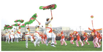 民俗活动:花灯表演则是一种融合故事传说、工艺制作与展示、舞蹈说唱以及民间信仰仪式为一体的综合性艺术表演形式,主要包括扎制花灯、请灯、跨村落巡演等活动。花灯扎制成壁虎、蝎子、螃蟹、蝈蝈、青蛙等8种动物形状,由16个少年儿童共同演出,场面热闹壮观,充满乡土气息和地方特色。