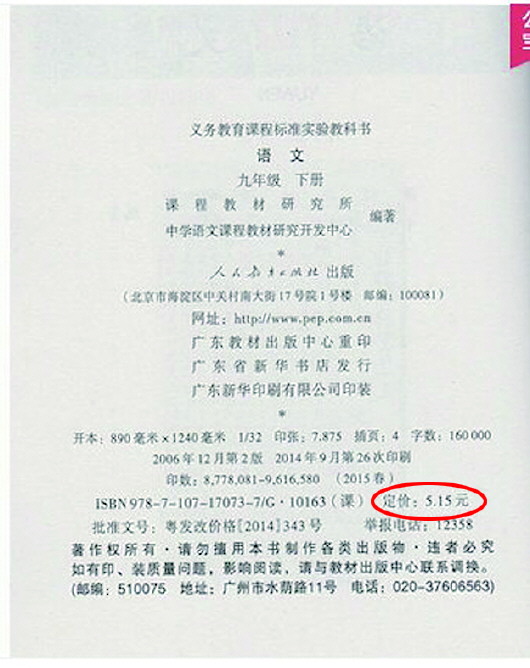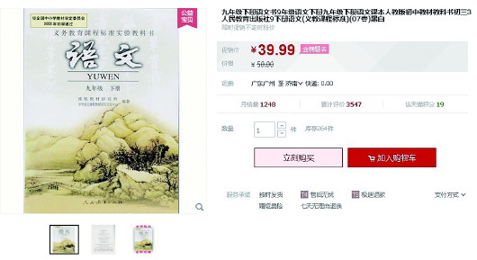 淘宝网上定价5.15元的人教版语文教材卖到了39.99,元,月销量1000余件。
