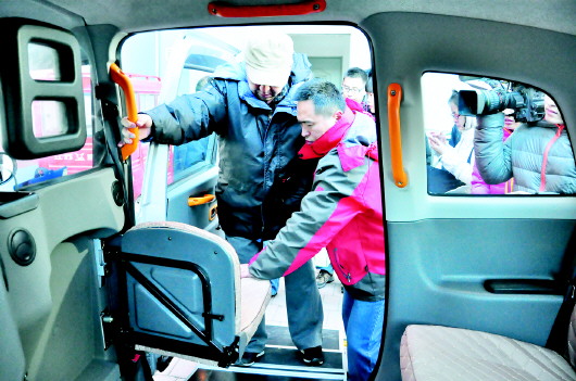 残疾人士体验无障碍出租。 本报记者 万兵 摄