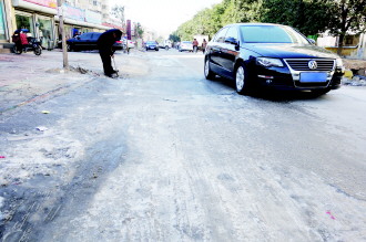看到记者在现场拍照,一名洗车店的工作人员走过来向记者表示,这里的下水道已经坏了好几个月了。为了尽量不让洗车产生的废水乱流,几家洗车店在路沿石上方挖了一条排水沟,能将水引流到西边的一个下水口排掉。“谁也不想因为这个滑倒了人。”洗车店的工作人员说。
