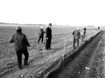 但当检察人员再次来到该片区域时,却发现4名工人正在安插铁丝网,被取缔的赌狗场又要开张了。在现场记者看到,这片土地原是麦地,被圈占起来的面积约15亩,算上四周被踩实的耕地总计20亩。场地里随处可见兔子毛和狗掌印,赌狗场三边都被重新围上了铁丝网,4名女工手持锄头,正刨沟压埋黑色网格。看到工人施工,检察官卢金义和王旭快步上前制止,责令其立即停工。“早上8点多有人雇我们来安铁丝网,我们也不知道这片土地是干什么的。”一位上了年纪的女工说,随后4名女工收拾工具离开现场。