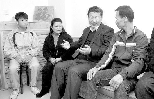 下午,习近平前往石排湾公屋看望普通市民。习近平同公屋居民谭玉娥全家坐在一起拉起了家常。“家里几口人?”“做什么工作?”“全家收入有多少?”“小孩子上几年级了?”“住房开支有多少?”习近平详细了解谭玉娥一家的工作生活情况。谭玉娥告诉习主席,她在建筑材料公司从事文员工作,丈夫是建筑工地工人,3个女儿正在上学,搬入新居8个多月,感到非常满意。