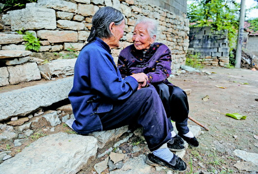 找到这个村很不容易。山路崎岖狭窄,导航都迷糊,记者靠当地老乡才找着了地方。一进村,问102岁的老寿星住哪儿,大家都知道。