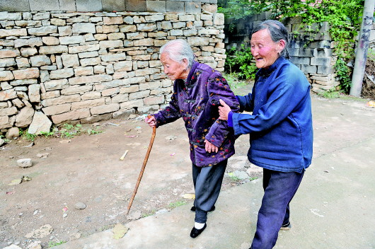 隔壁家的老太太搀着董连美遛弯,两人一起走过了数十年的光阴。