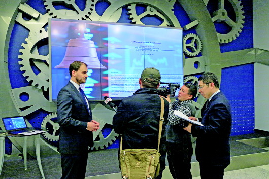 当地时间12月3日下午,采访团来到华沙股票交易所进行采访。(资料片)