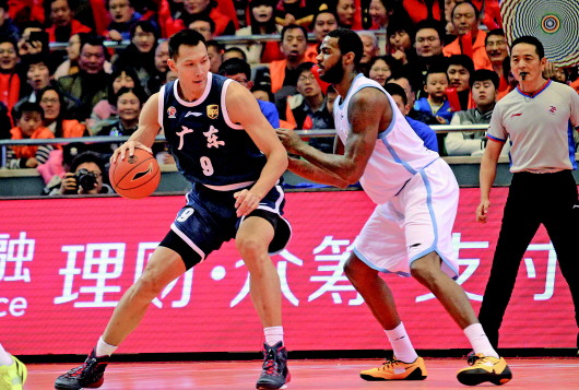 易建联在同克拉克的比拼中技高一筹。 本报记者 王鸿光 摄