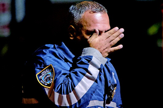 20日,在美国纽约布鲁克林,一名警察在枪击案现场拭泪。 新华/路透