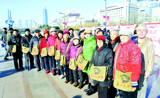 服务队队员身上军绿色毛主席头像的挎包非常醒目,吸引了不少市民的注意。“我们老年人,不太会扫描二维码,就组团来现场了,我们为自己代言,为自己拉票!”队员陈瑞香说。
