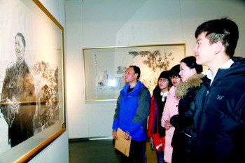 12月5日,14位书画名家为缅怀伟人,弘扬革命精神,在齐鲁美术馆举行的书画笔会作品自上周一刊登见报之后,得到了广大书画爱好者的热切期盼,纷纷致电本报,要求向大众展示描绘伟人的作品,感受伟人的光辉。所以本次展览将笔会中书画家合作的《人民的儿子》、《远瞩》、《岱岳天烛峰》、《藤荫读书图》、《亮节高风》、《观道图》、《荷香》等十余幅作品作为本次展览的一大亮点在齐鲁美术馆全部展出。