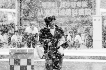 21日,烟台再次迎来降雪,因为雪下得大而且突然,给行人来了个措手不及。 本报记者 吕奇 摄