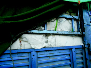 但是当值班中队长依据要求,让驾驶员打开前面篷布进行全面验货时,驾驶员面露难色,表示前面和后面的货都是一样的,全是鲜鸡蛋。驾驶员的言行引起了工作人员的怀疑,他凭借多年的工作经验判断这辆绿通车可能有逃费嫌疑,于是根据绿通车验货规定坚决要求驾驶员打开篷布进行全面验货。但是驾驶员始终百般阻挠拒绝打开前面篷布配合验货。在工作人员长达十几分钟的耐心说服和解释相关规定的情况下,驾驶员才勉强打开前面的篷布。打开一看才发现,其货车前面装的货物全都是布匹,为偷逃通行费,只有在后面装了一小部分鸡蛋,以混淆收费人员的判断。