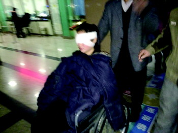 受伤女生包扎完伤口后被推出手术室。 张磊 摄