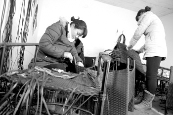 今年35岁的邵秋云本身就是留守妇女,以前没孩子在外地打工,有了小孩无法脱身外出,她就开始琢磨在家干点事。“成本小,技术含量不很高的活,才好干。”邵秋云说,经过市场考察,她看中家具企业外包的部分业务——加工编织椅子、茶几、床,没有技术就到厂子里去学,经过一个多月的学习,于2014年2月,她的编织加工点正式营业。
