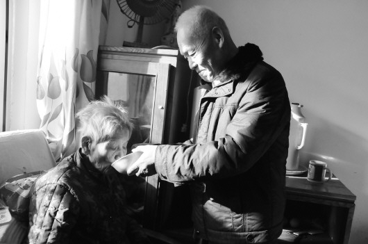 这次摔跤,段玉兰的腿骨折了,因为上了年纪不好愈合,她再也不能单独走路了。因此,从母亲出院后,王洪兴就寸步不离地守着母亲,帮母亲起床、穿衣,给母亲洗脚、按摩……王洪兴像照顾孩子一样照顾母亲,至今已有2年多了。