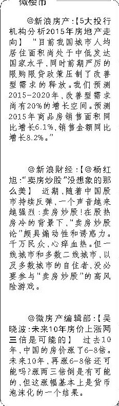 @新浪财经:【@杨红旭:“卖房炒股”没想象的那么美】 近期,随着中国股市持续反弹,一个声音越来越强烈:卖房炒股!在股热房冷的背景下,“卖房炒股论”颇具煽动性和诱惑力。千万民众,心痒血热。但一线城市和多数二线城市,以及多数城市的自住者,没必要参与“卖房炒股”的高风险游戏。