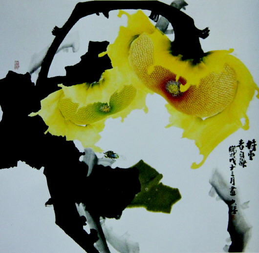 要在绘画领域占领一席之地,必须找到自己的优势和方法,所以,贾大年选定了较为单纯的题材——葵花。“现代书画的痨病就是灰蒙蒙一片,缺少让人耳目一新的作品。”贾大年介绍,一次偶然的机会,他开始研究、品读葵花,之后他开始以“葵花”为主题的创作。“葵花朴实无华、默默无闻,一生都在追求光明,这也是我想借作品向大家传达的一个信念,那就是传达一种积极向上的正能量。”