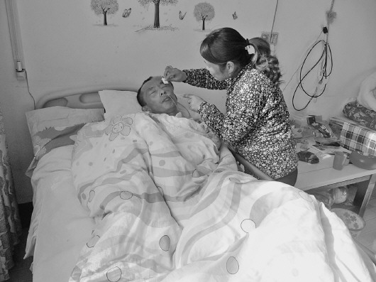 李会霞在照顾丈夫。