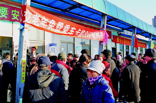 同样,3路终点站石门、BRT1号线终点站全福立交桥等临时发售点也排起了长队。车队工作人员为老人们准备了凳子、热水等,并有专人在现场维持秩序,解读办理手续。