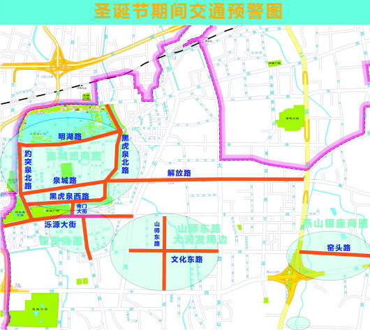 ◤历下区圣诞期间交通预警示意图。 交警供图