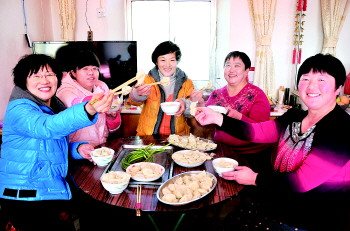 22日,在福山区张格庄镇王宝莲家中,一家人吃着饺子,迎接冬至。 特约摄影 孙悦 摄