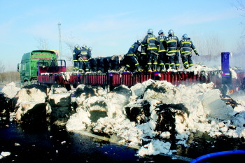 20日12点17分,滨博高速淄川段81公里处,一辆满载棉花的半挂车着火,火迅速将整车棉花引燃。淄博市公安消防支队官兵火速赶到现场,对车体两侧火势进行扑救,随后对整车棉花进行清理和灭火。经过两个多小时的扑救,火势被扑灭。半挂车司机告诉消防官兵,是高速路上其他车上的人看到着火告诉了他的,而具体的起火原因他也不清楚。 本报通讯员 冯岩 摄影报道