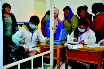 筛查中心的医务人员入村进行筛查。