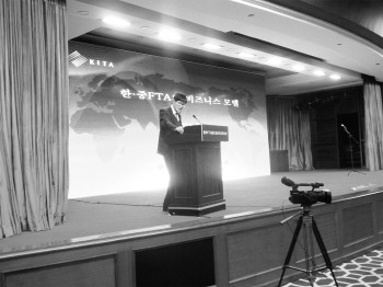 23日下午,在中韩FTA扩大经济合作研讨会上,韩国贸易协会北京支部长崔荣敏说烟台将受惠多多。 本报记者 王永军 摄
