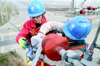 35千伏渤海线路改造工程是迎峰度冬的重点工程,该工程将全力解决临邑县城西供电可靠性不高、低电压、供电“卡脖子”等突出问题。为保障工程进度,电力施工人员每天清晨6点就得开始在电杆上干活了,而在这群施工队伍中最流行的一句话是,“我是党员,让我来”。