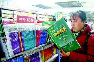 ▲23日,一名家长正在书店为孩子挑选辅导书。 记者 陈乃彰 摄