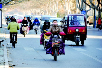 23日,淄博最低温达0℃,不少出行的市民纷纷换上厚衣服。 本报记者 王鸿哲 摄