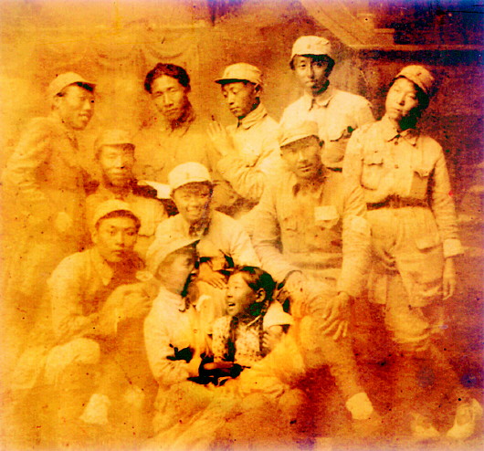 照片中前排的小女孩就是我,揽着我的阿姨名叫苏伟,是剧团的旦角演员,在我身后的是阮若珊阿姨,她就是《沂蒙山小调》的词作者,后排右二是她的丈夫李林(《沂蒙山小调》的曲作者),后排左二没戴军帽的是著名小说《铁道游击队》的作者刘知侠,第二排右一坐着的是我的父亲马润生。由于那时年龄小,其他的人已经记不清名字了。虽然已经过去近70年了,我一直珍藏着这张珍贵的照片,时常拿出来看看,怀念叔叔阿姨们当年亲切的音容笑貌。