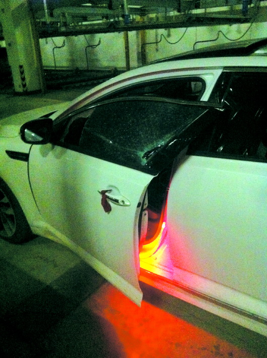 被停车位压坏的车门玻璃。 (采访对象供图)