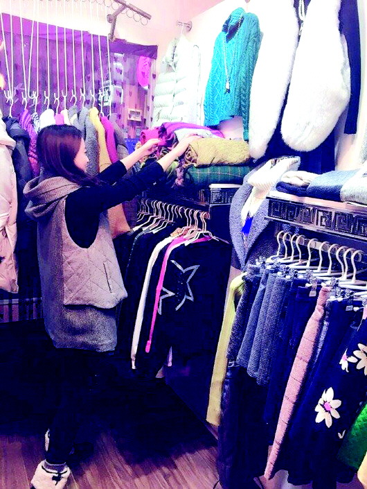 在专卖店中缪缪整理新上的货,并同步更新朋友圈。      本报见习记者 范佳 摄