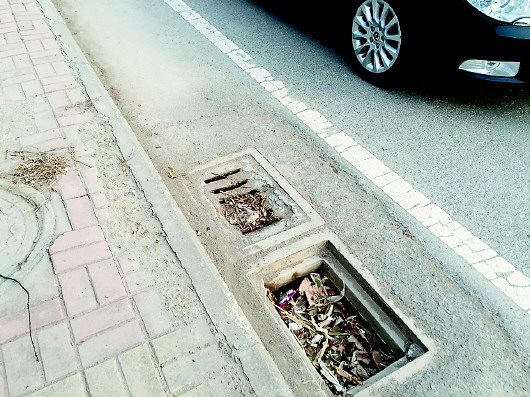 多处排水口井盖缺失。 本报见习记者 邢敏 摄