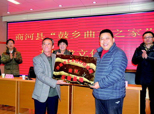 12月19日上午,商河县“鼓乡曲艺之家”暨“济南市艺术创作研究院商河实验基地”挂牌成立仪式在县城市展馆举行。旨在为广大的曲艺爱好者搭建一个相互沟通、学习的平台。济南市艺术创作研究院将在培训、交流、表演等方面给予支持和帮助。 本报通讯员 李本科 摄