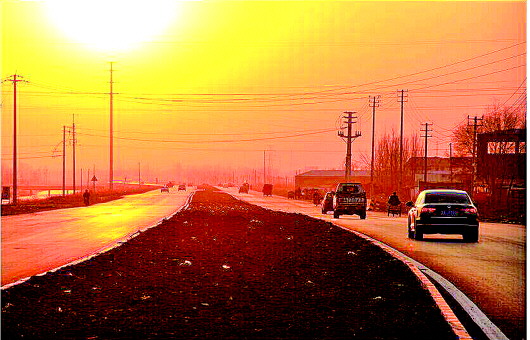 ▲夕阳的余晖诉说家的思念,疾驰的车辆唤醒蠢蠢欲动的心灵。永远不要忘记回家的路。 郭永路 摄