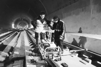 12月份,李魏林的工作地点在蓁山隧道,一进入工作区域,李魏林便收敛了笑容,开始严谨地工作。“这里需要减0.5毫米,这个加0.8毫米……”李魏林熟练地拧下螺钉,更换扣件、垫板,使得误差精确在1毫米之内。