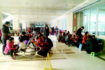 24日,妇儿医院门诊大厅变成了输液厅。 杨林 摄