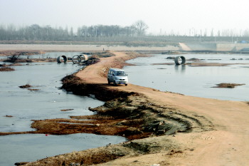 记者来到桥上看到,这是一座完全用泥土夯筑起来的土桥,没有护栏。土桥蜿蜒200多米,最窄处仅两米左右,只能容一辆汽车通行,最宽处也不过四五米。遇到车辆经过,行人总是很小心地避让。“每年夏天河水上涨的时候,土桥就会被河水淹没。”大坝村75岁的老张说,汛期过后,村民就会把桥重新修好,继续收取通行费。